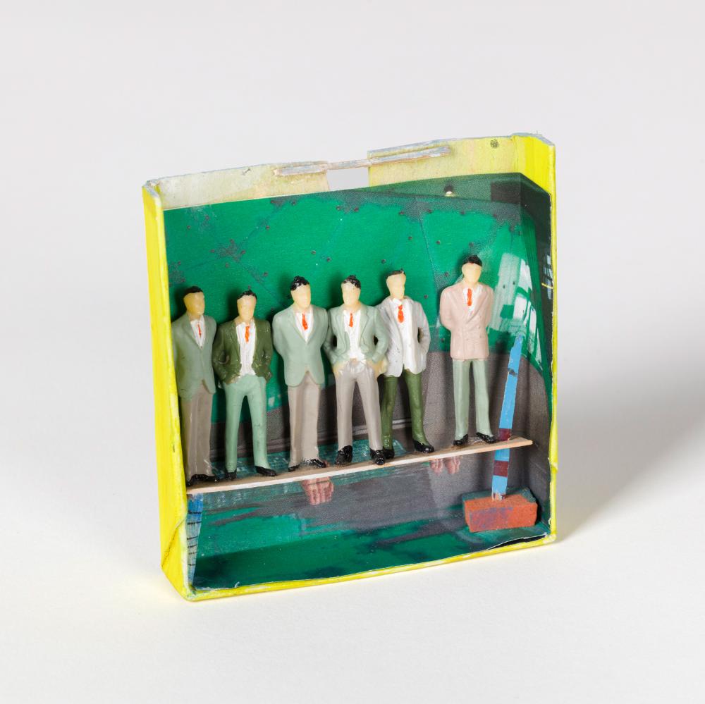 Karton, Kunststoff, Gouache, Collage, Holzsplitter, Radiergummi