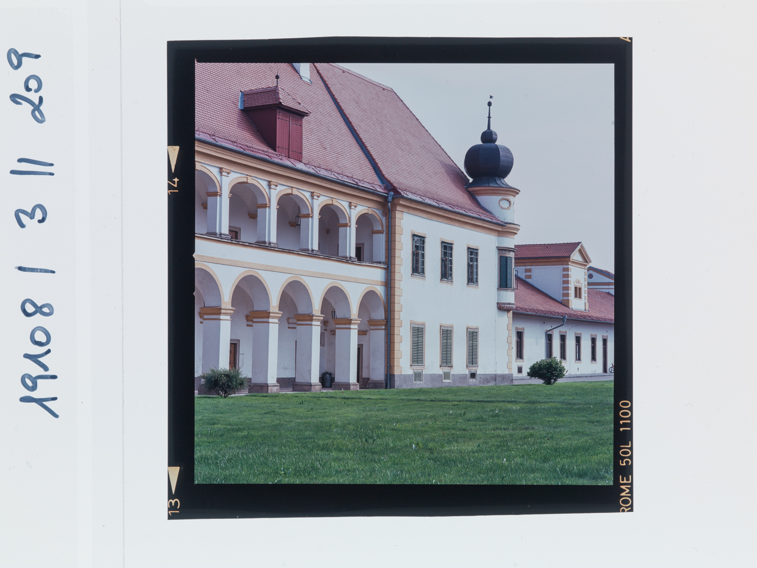 Südtrakt des äußeren Stiftshofes mit zweigeschossigen Pfeilerarkaden und der Sommerprälatur.