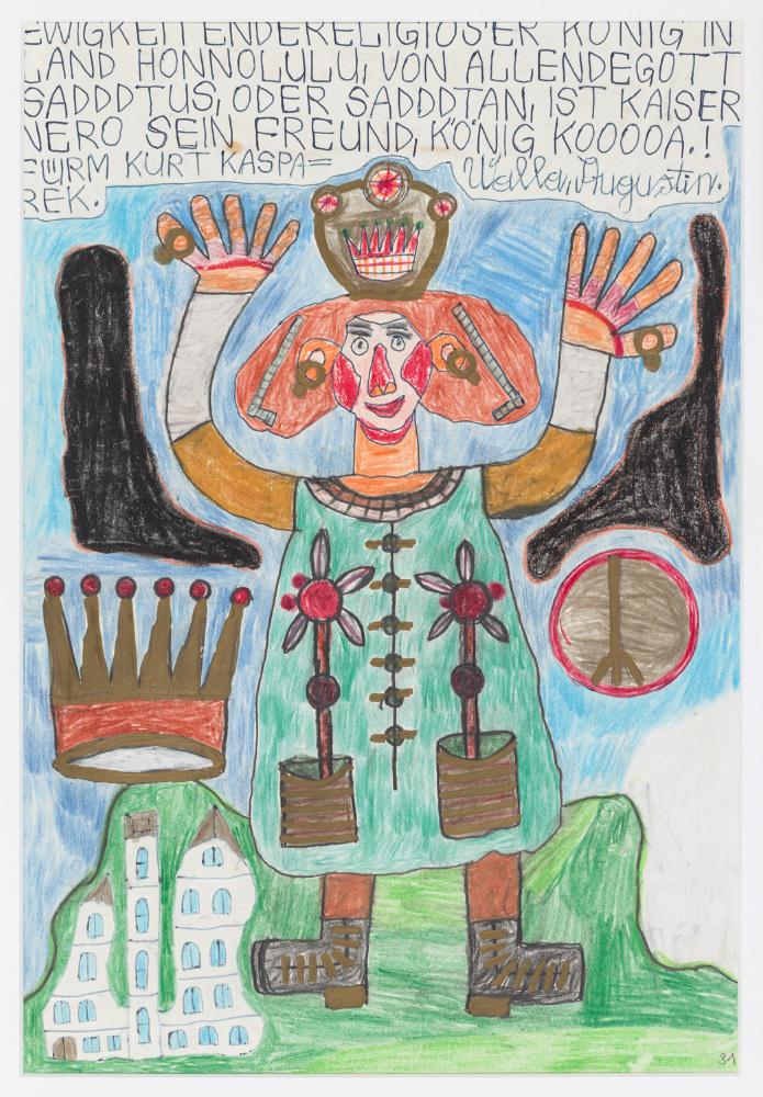 Kugelschreiber, Graphit, Farbstift, Lackstift, Wachskreide auf Papier