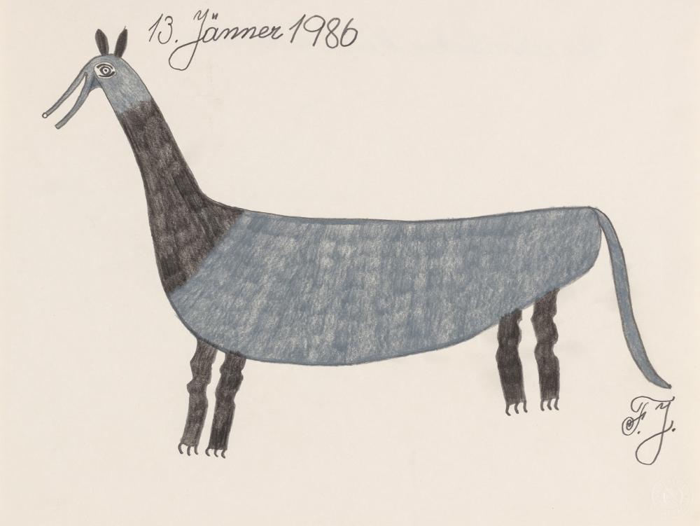 SignaturVS ob. dat., re. un. sign.: "13.Jänner 1986, F.J."