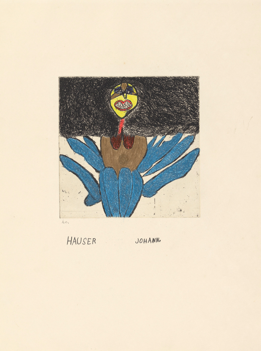 Material/TechnikFarbstift auf Papier (auf Radierung)