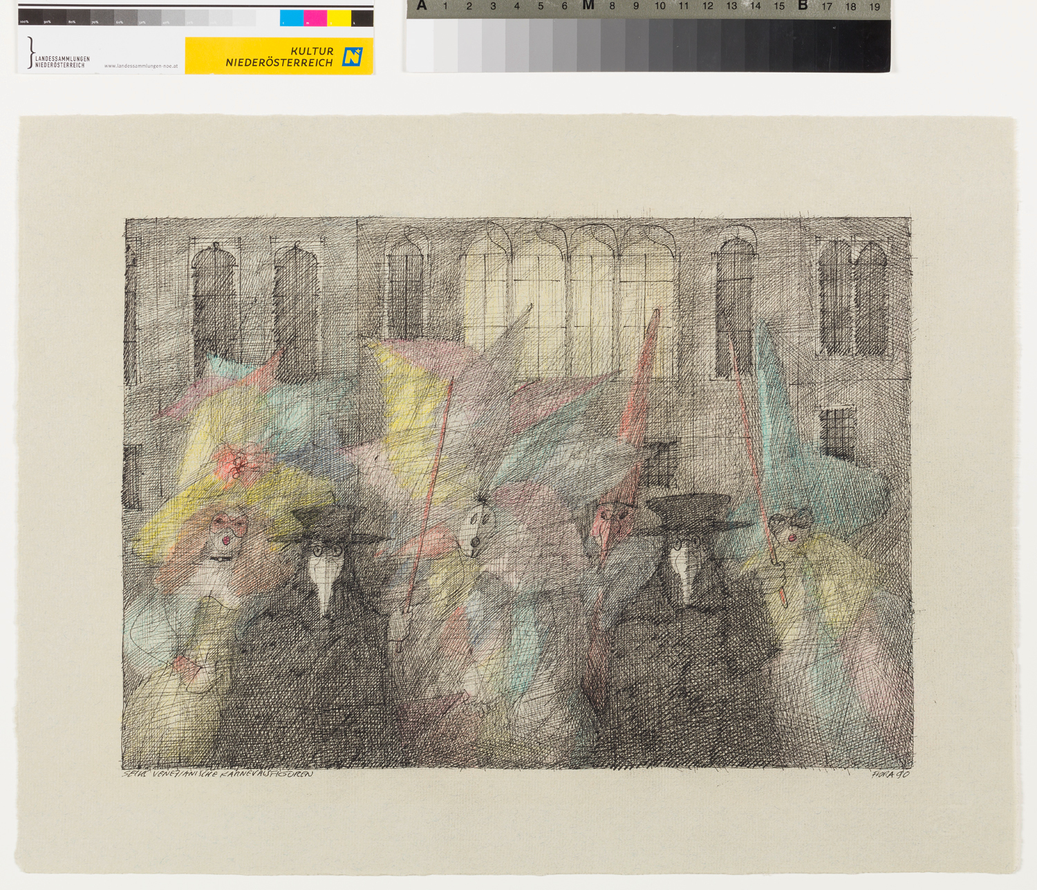 Material/TechnikTusche, Farbstift auf Papier