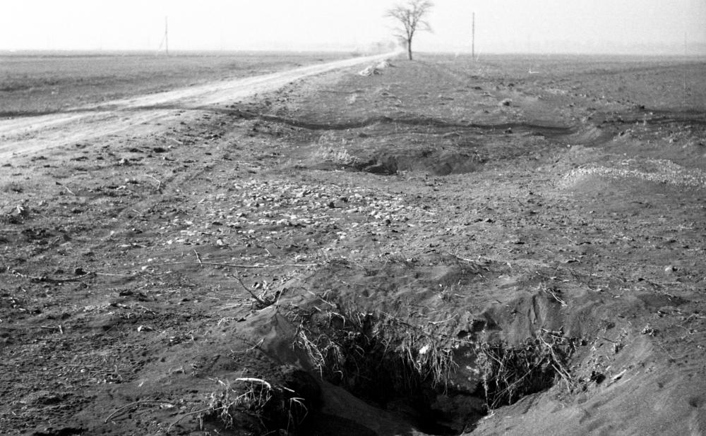 Flugerde bei Münchendorf, vollständige Verwehung der Wassergräben beiderseits der Straße