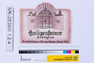 Abgelöstes Weinflaschenetikett aus einer Sammlung von den 1940er bis zu den frühen 1960er Jahren; Weinsorte: "Zöbinger Heiligensteiner GRÜNER VELTLINER"; Darstellung von einem Dorf; Weinbau, Kellerei bzw. Handel: "WEINGUT BURGI EDER ZÖBING"