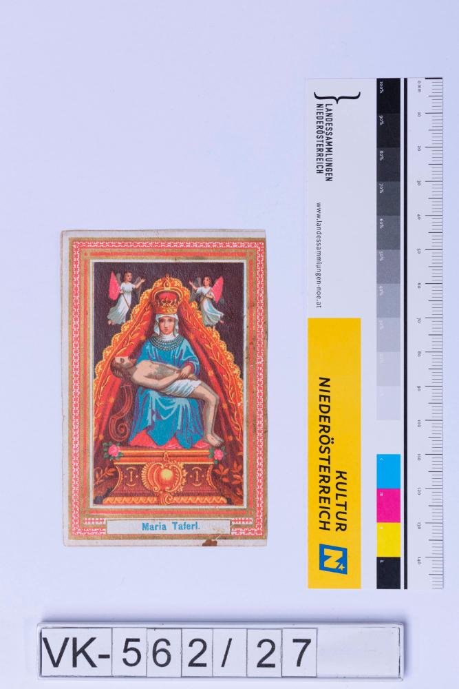 Vorderseite: Gnadenbild Maria Taferl, Beschriftung: "Maria Taferl."; Rückseite: Gebet, handschriftliche Notiz