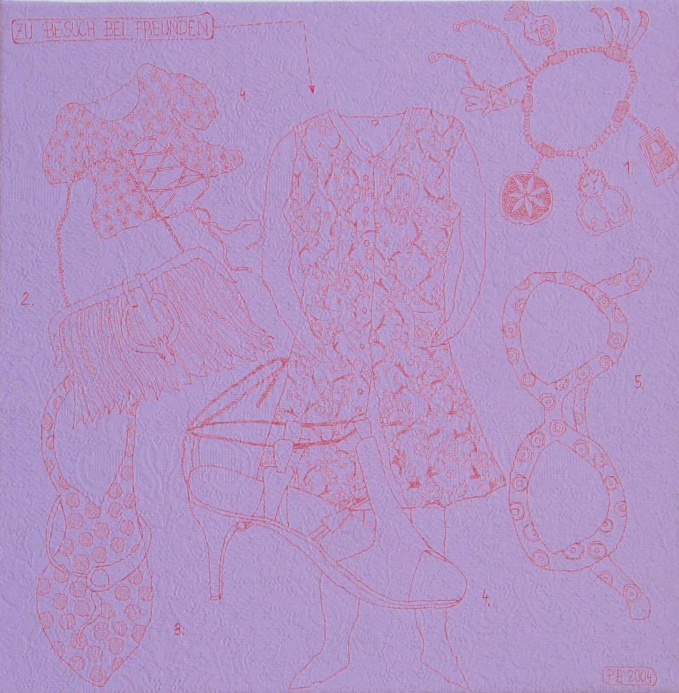 Farbstift, Acryl, Vorhangstoff, Leinwand