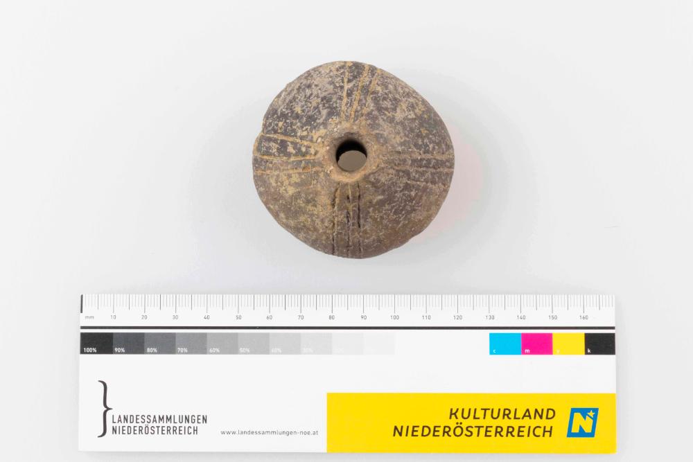 Spinnwirtel fungierten als Schwunggewichte für Handspindeln, mit denen Fasern versponnen wurden. Während der Spindelschaft meist aus Holz gefertigt wurde und nicht mehr erhalten ist, wurden die Wirtel oft aus unvergänglichem Material wie Keramik hergestellt. Spinnwirtel geben einen klaren Hinweis auf die Produktion von Textilien.