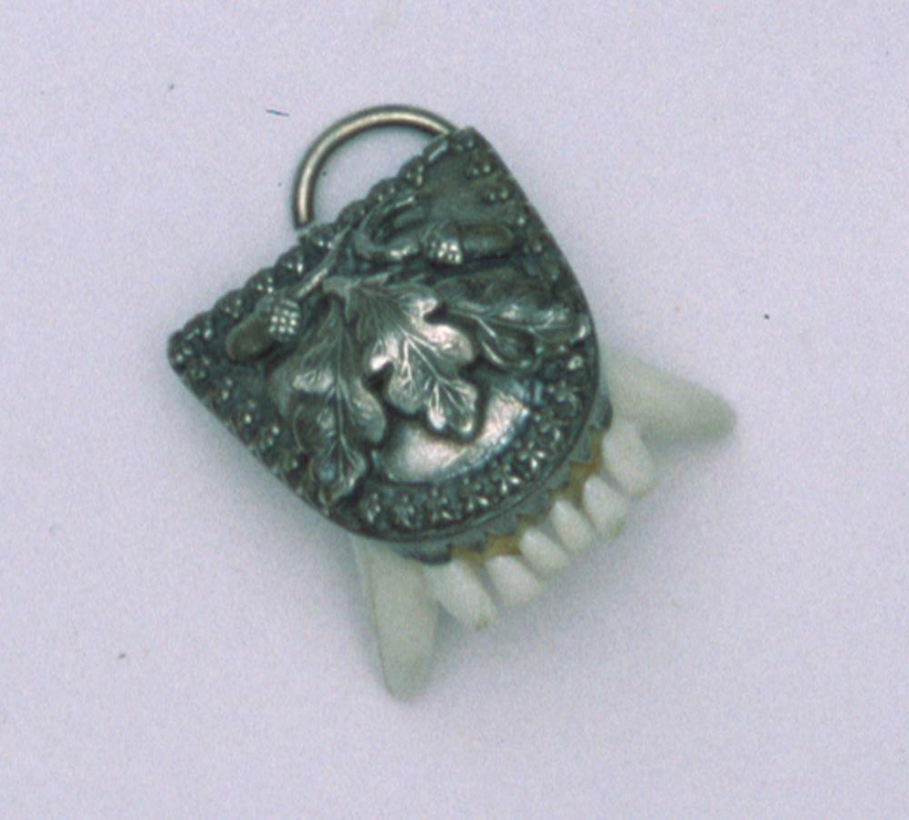 Amulett mit dem Oberbiss eines Marders in einer Fassung mit Eichenlaub und Eicheln.