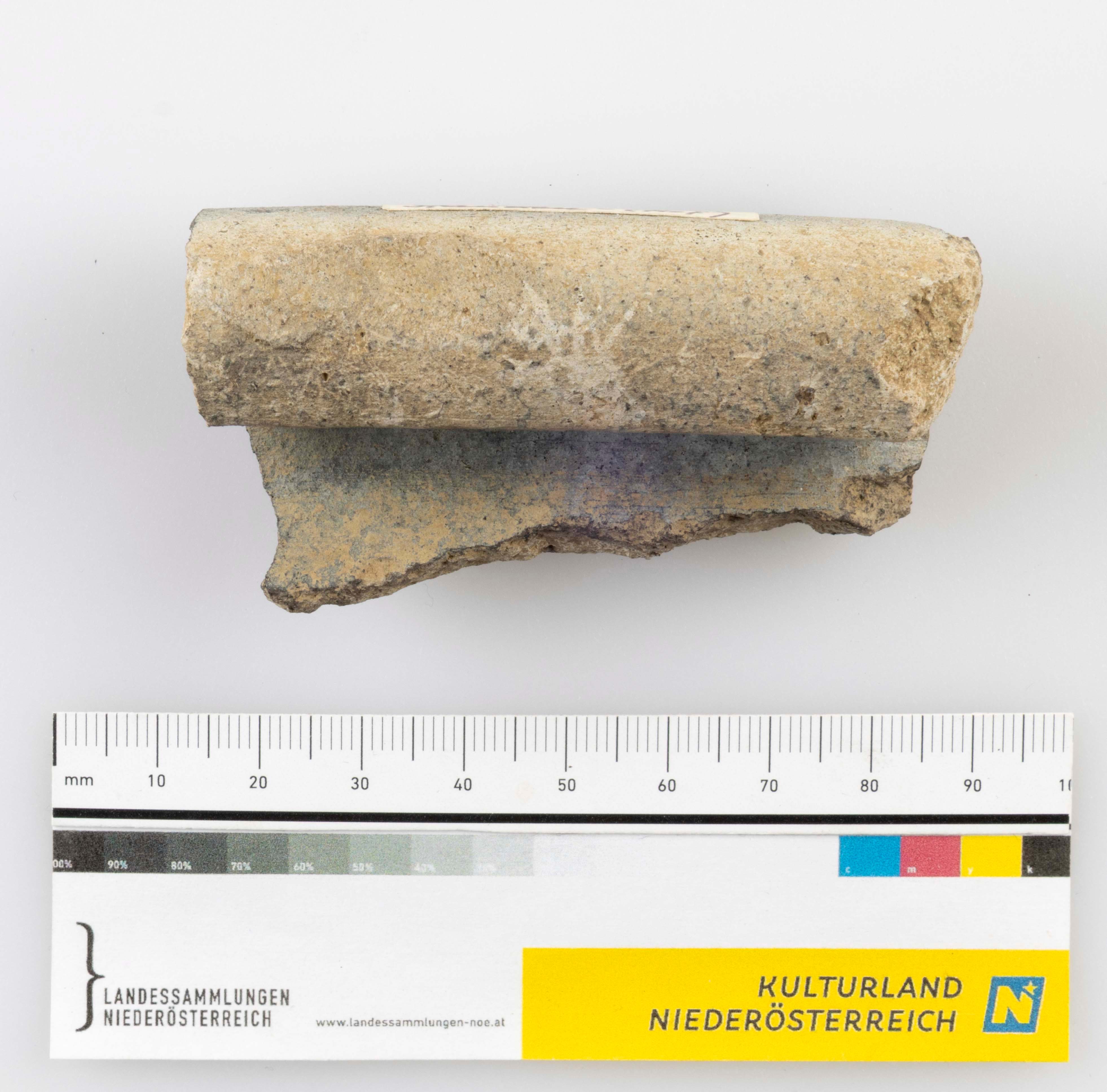 1 Randscherben (Wulstrand), grau & hellbeige oxidierend gebrannt
