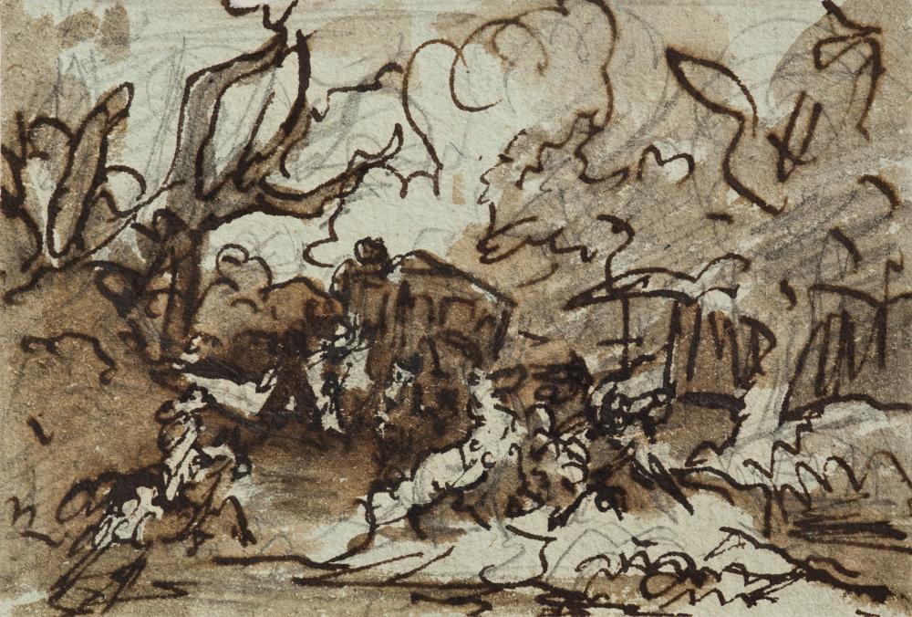 Bleistift, Tinte, laviert auf Papier