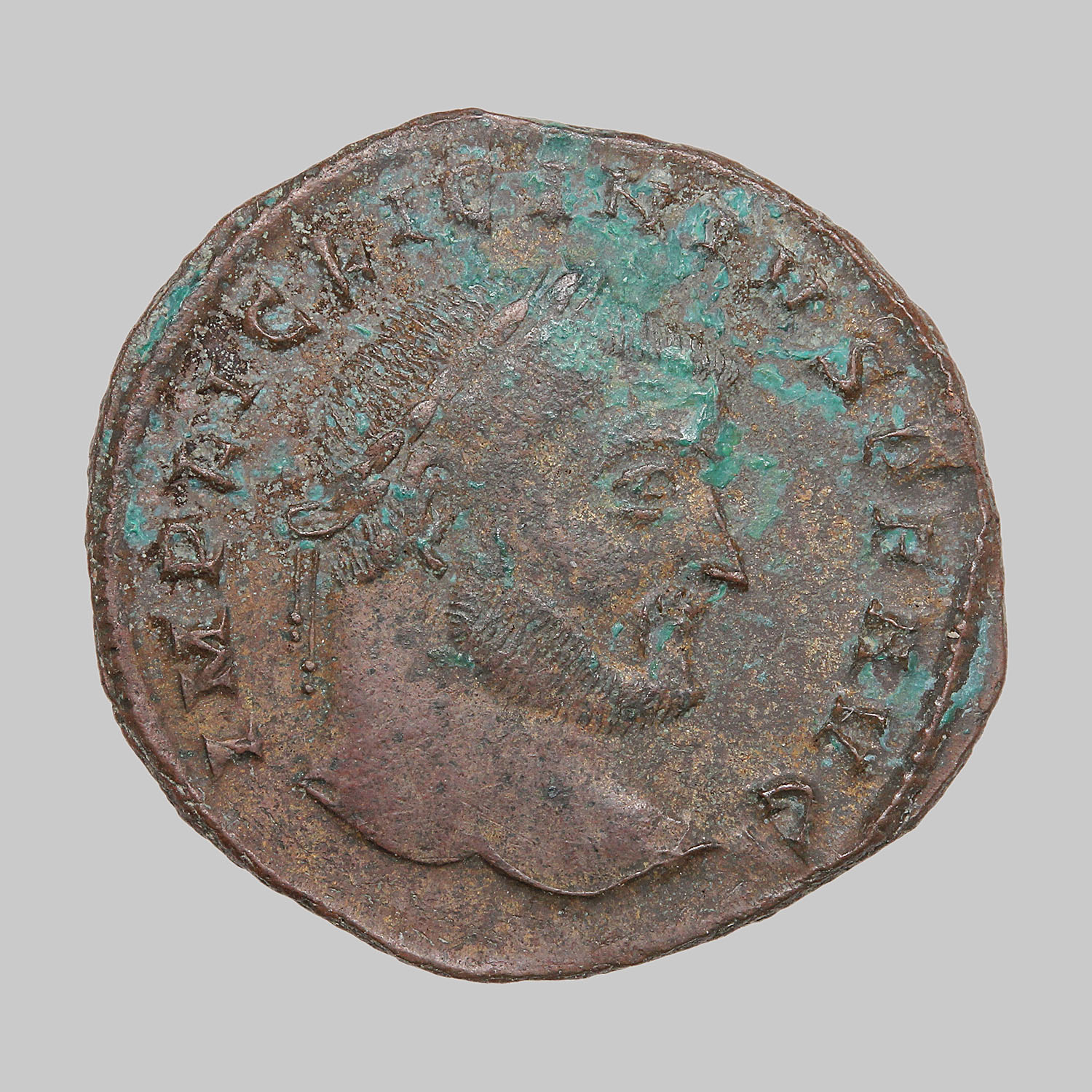 Kopf mit Lorbeerkranz n. r.