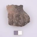 Wandscherbe eines freihändig geformten, germanischen Gefäßes mit parallelen Reihen von "Fingernagelkerben"