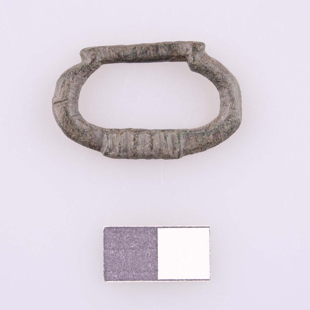 D-förmige Schnalle mit abgesetztem Steg und quergerillter Dornrast