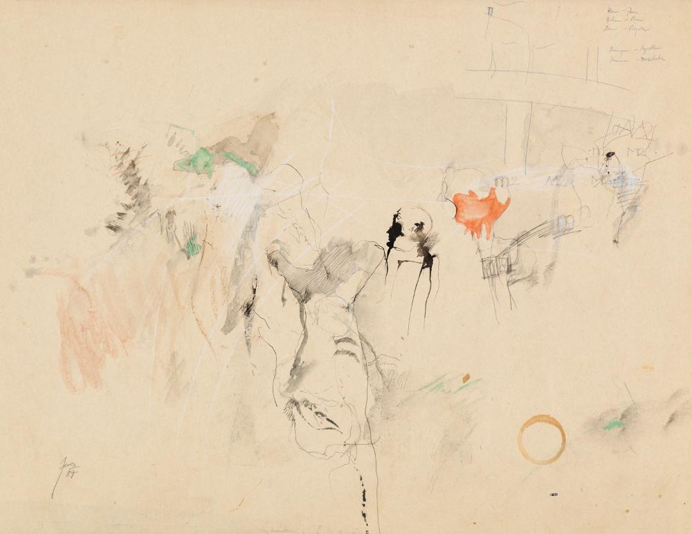 Signaturli. unten sign. u. dat.: "Zens / 87" re. oben beschr.: "Hermes - Zeus / Helena - Paris / Amor - Psyche / Marsyas - Apollo / Ikarus - Daedalus"