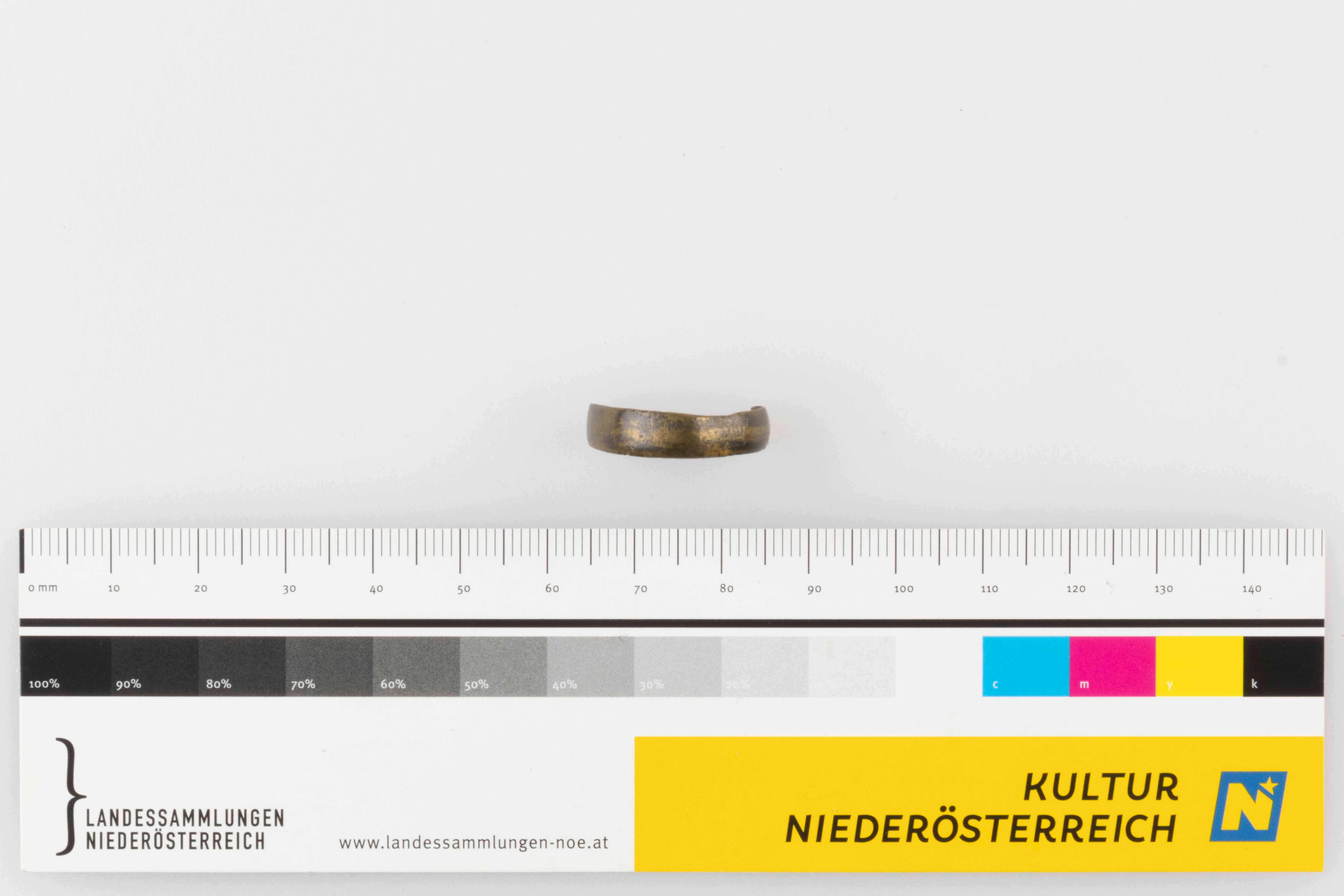 Fragment eines Bandfingerringes aus Buntmetall, unverziert.