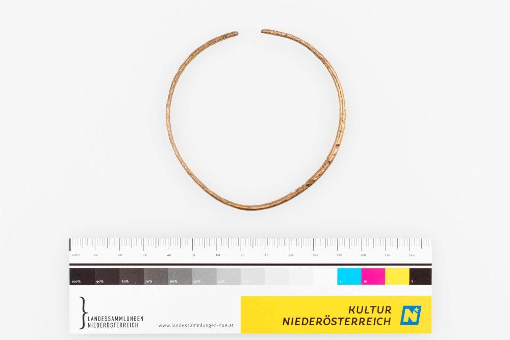 Armreif aus Buntmetalldraht von spitzovalem bis rundem Querschnitt