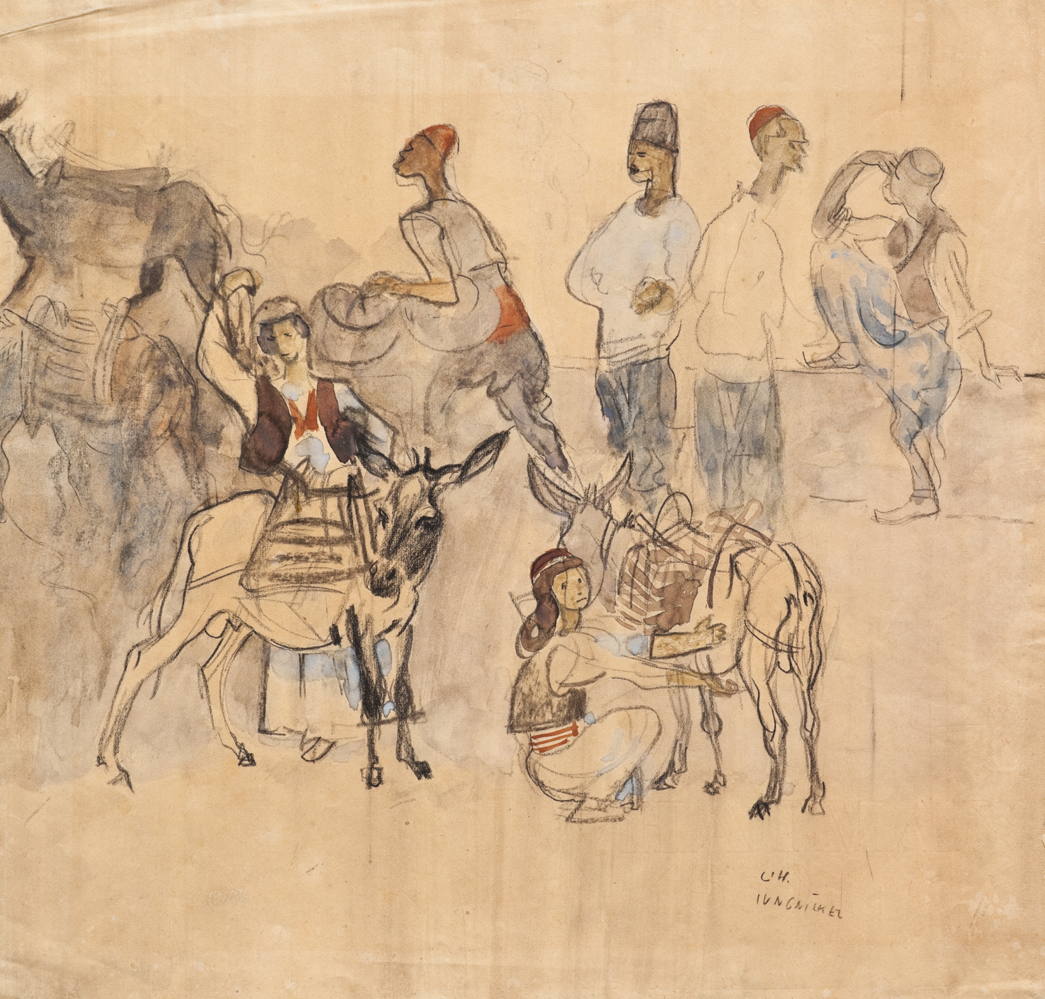 Material/TechnikKohle, Bleistift, aquarelliert auf Papier