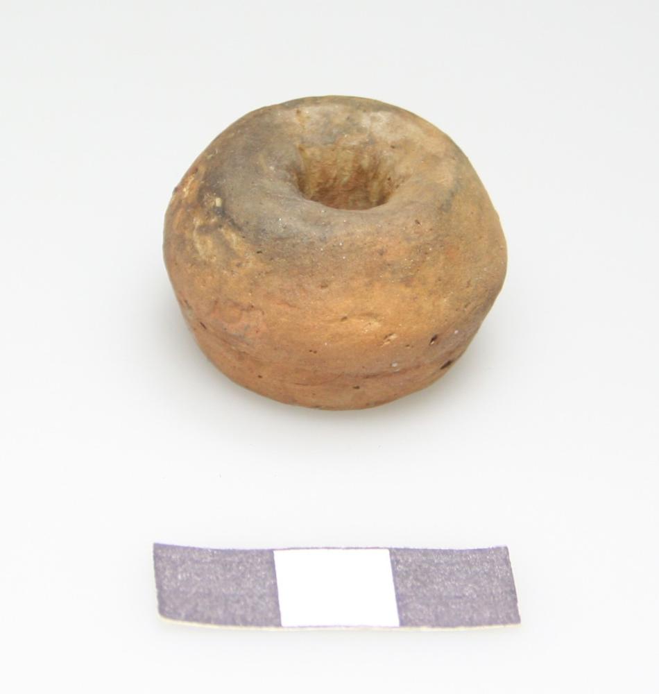 Doppelkonischer Spinnwirtel aus rotgelb bis dunkelgrau gebranntem, feinem Ton