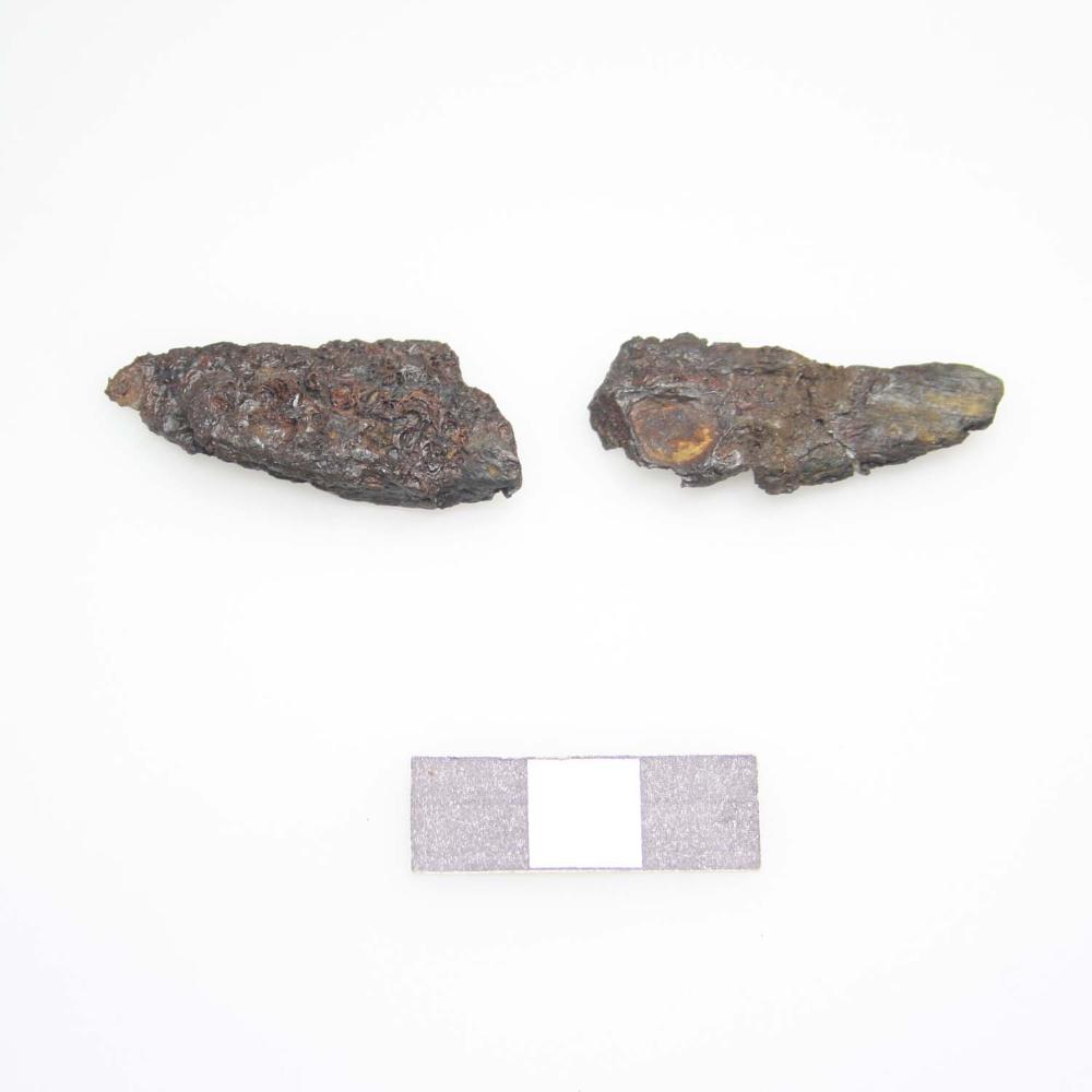 Zwei Fragmente eines Eisenmessers mit anhaftenden Holzresten am Griffende