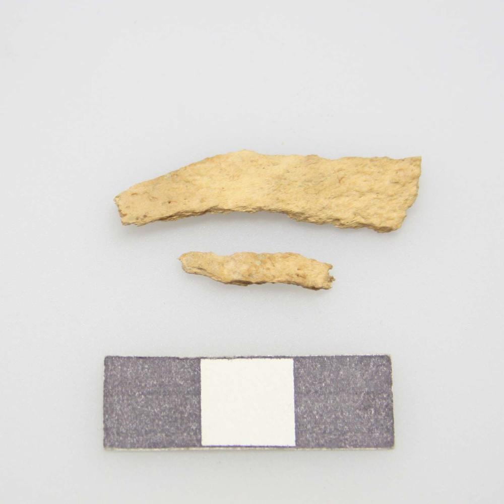 Zwei kleine, unverzierten Beinfragmente, vermutlich Teile der Mittelversteifung des Reflexbogens