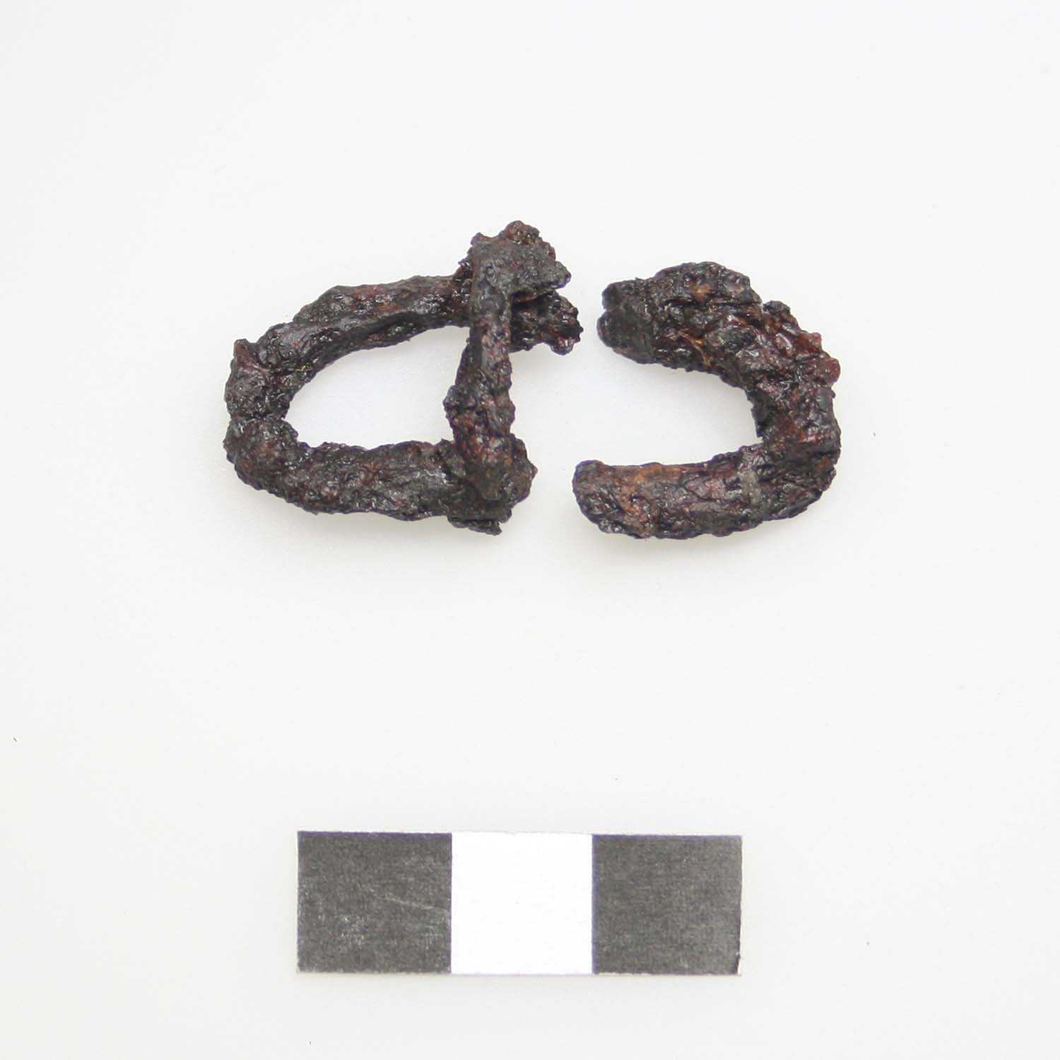 Gürtelschnalle aus Eisen mit Dorn, gebrochen in zwei Teile