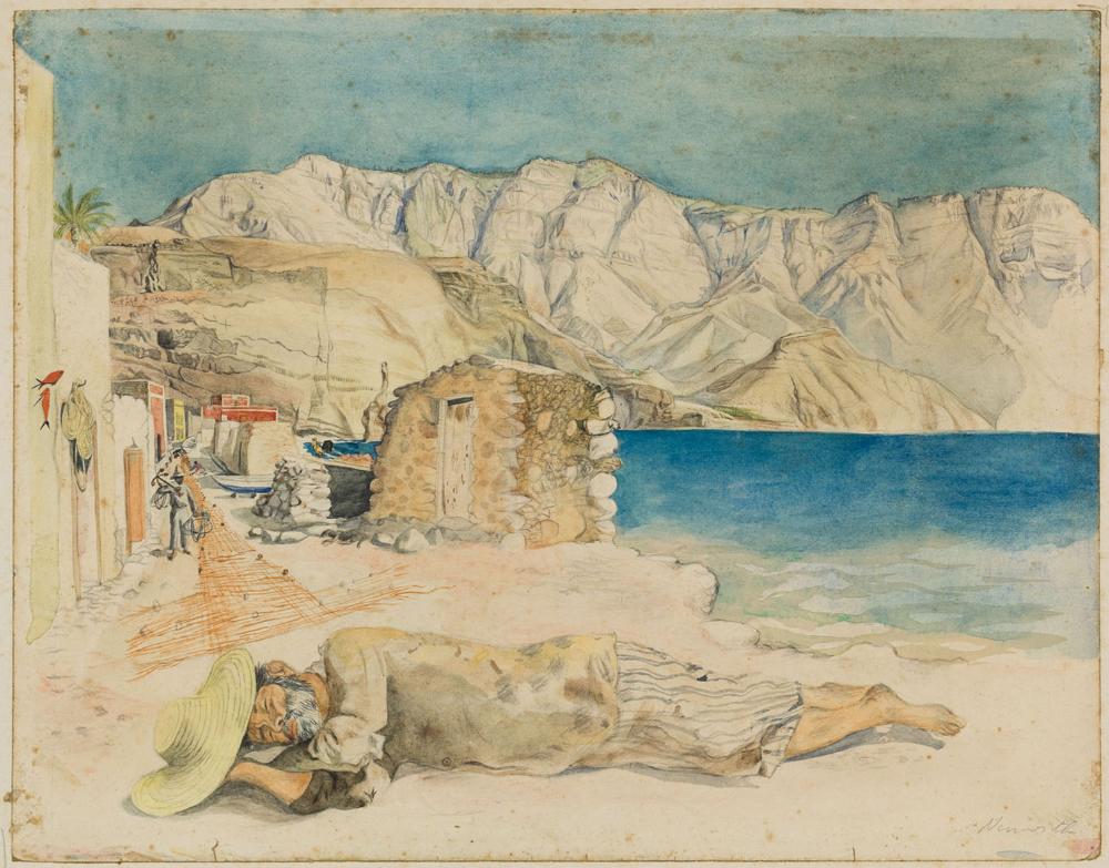 Passepartout rücks. bez.: "Arnulf Neuwirth / Fischer in las Nieves, Gran Canaria / Aquarell 1942"