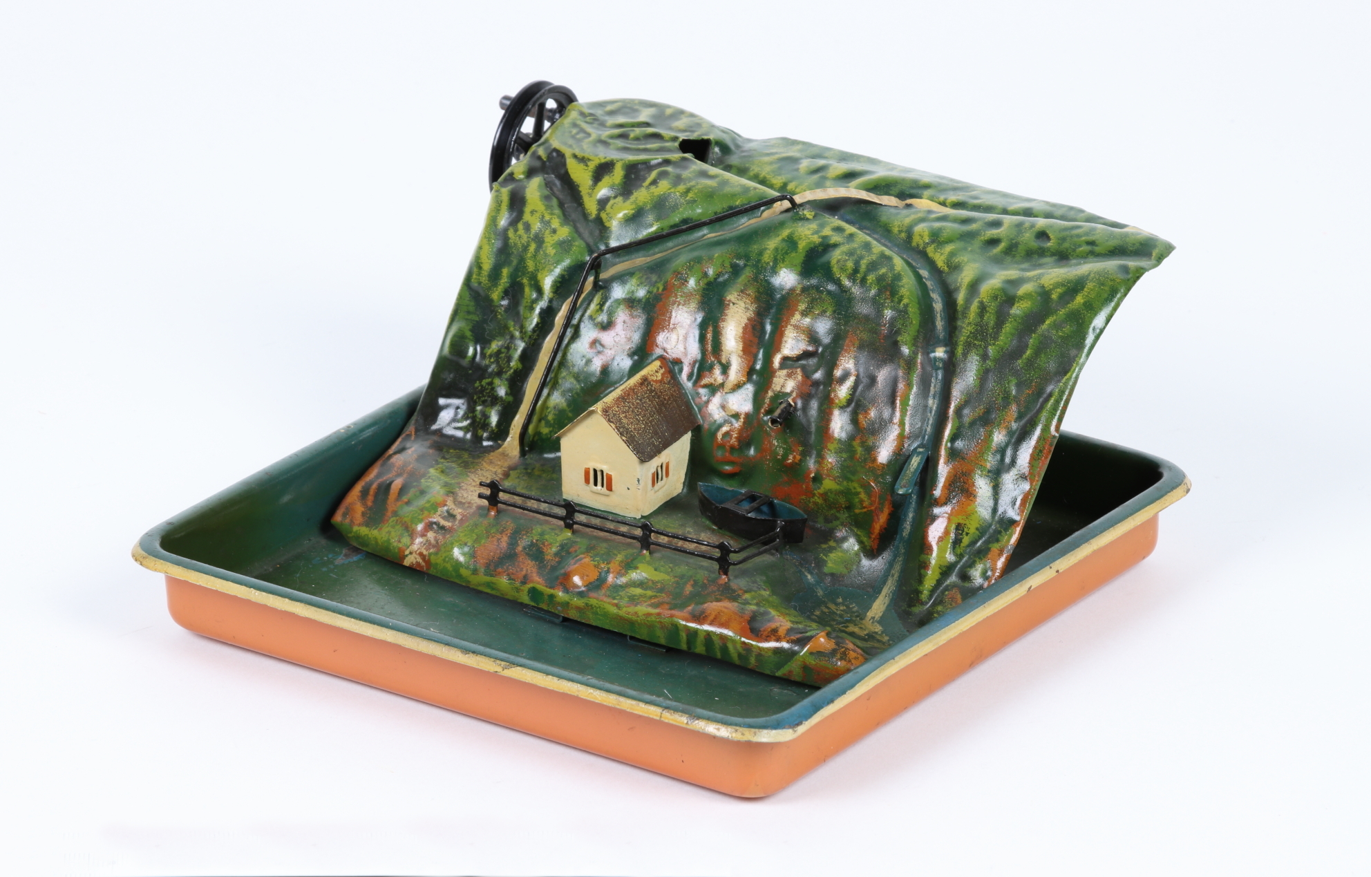 Märklin Berglandschaft mit Haus und Boot, handlackiertes Antriebsmodell für den Betrieb mit einer Dampfmaschine über Transmission, mit einer Pumpe für Echtwasserbetrieb