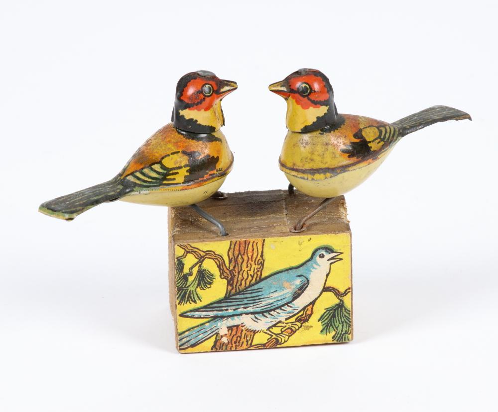 Vögelchen auf Holzkiste mit Zwitscherstimmen, Made in Germany