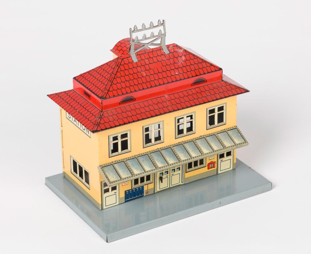 Bahnhofsgebäude mit großer Uhr, Spur 0, Fa. Johann Distler KG, Made in Western Germany