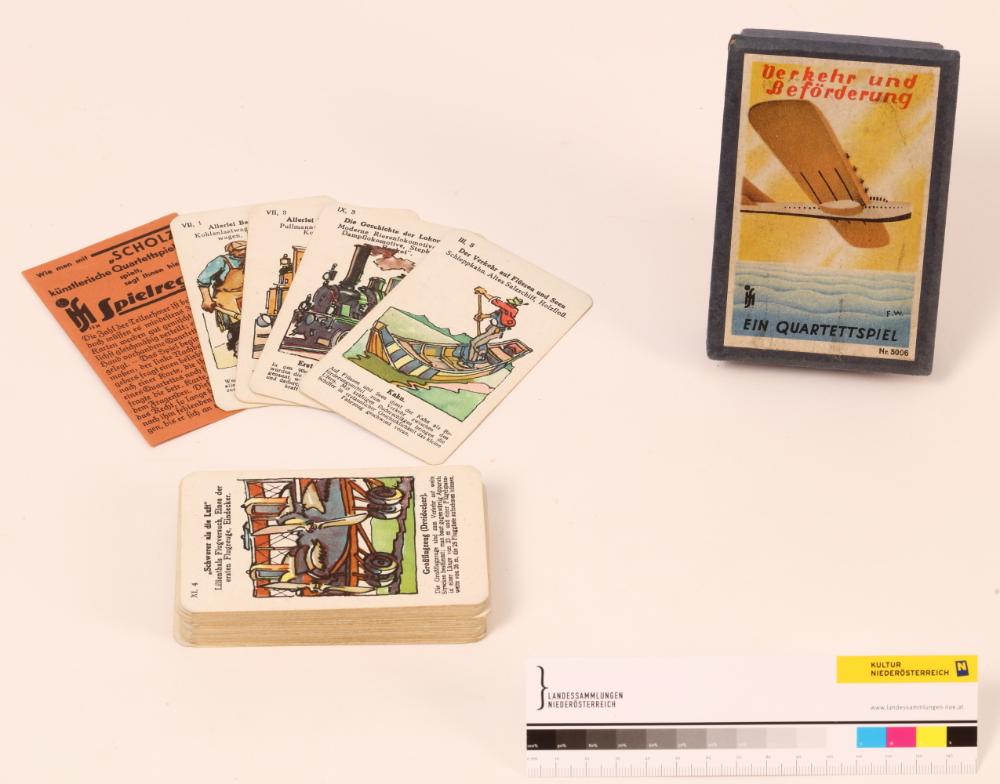 Quartettspiel „Verkehr und Beförderung“, Originalverpackung, Verlag Joseph Scholz, Main - JSM