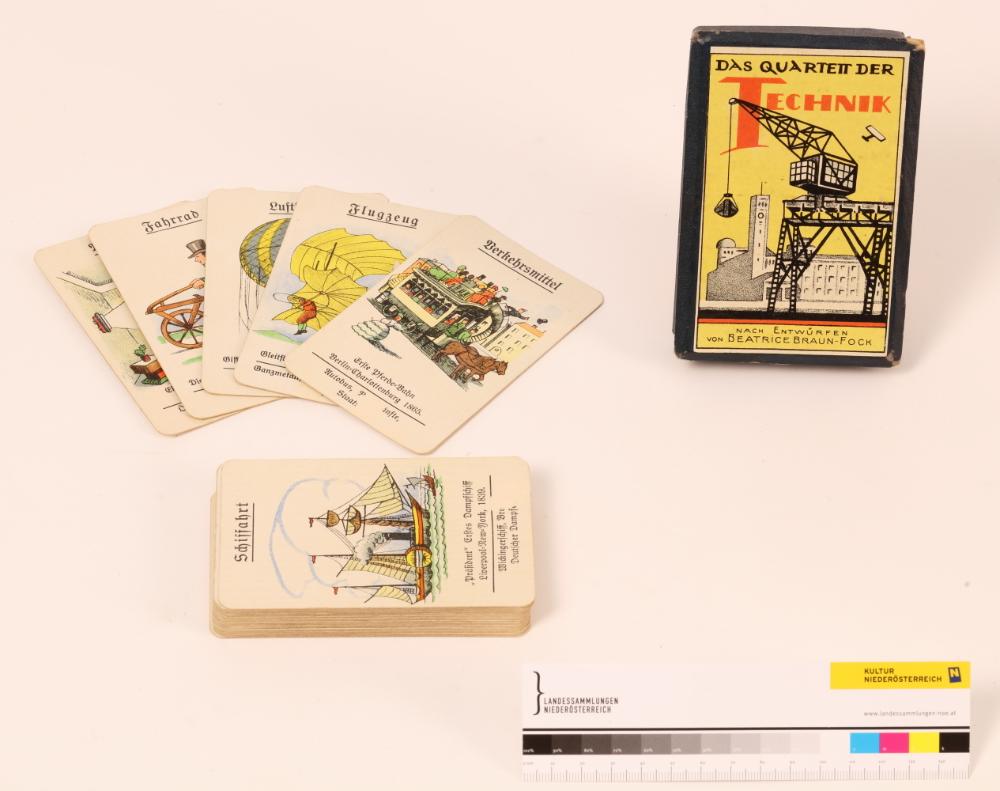 Quartettspiel „Das Quartett der Technik“, Originalverpackung, nach Entwürfen von Beatrice Braun-Fock