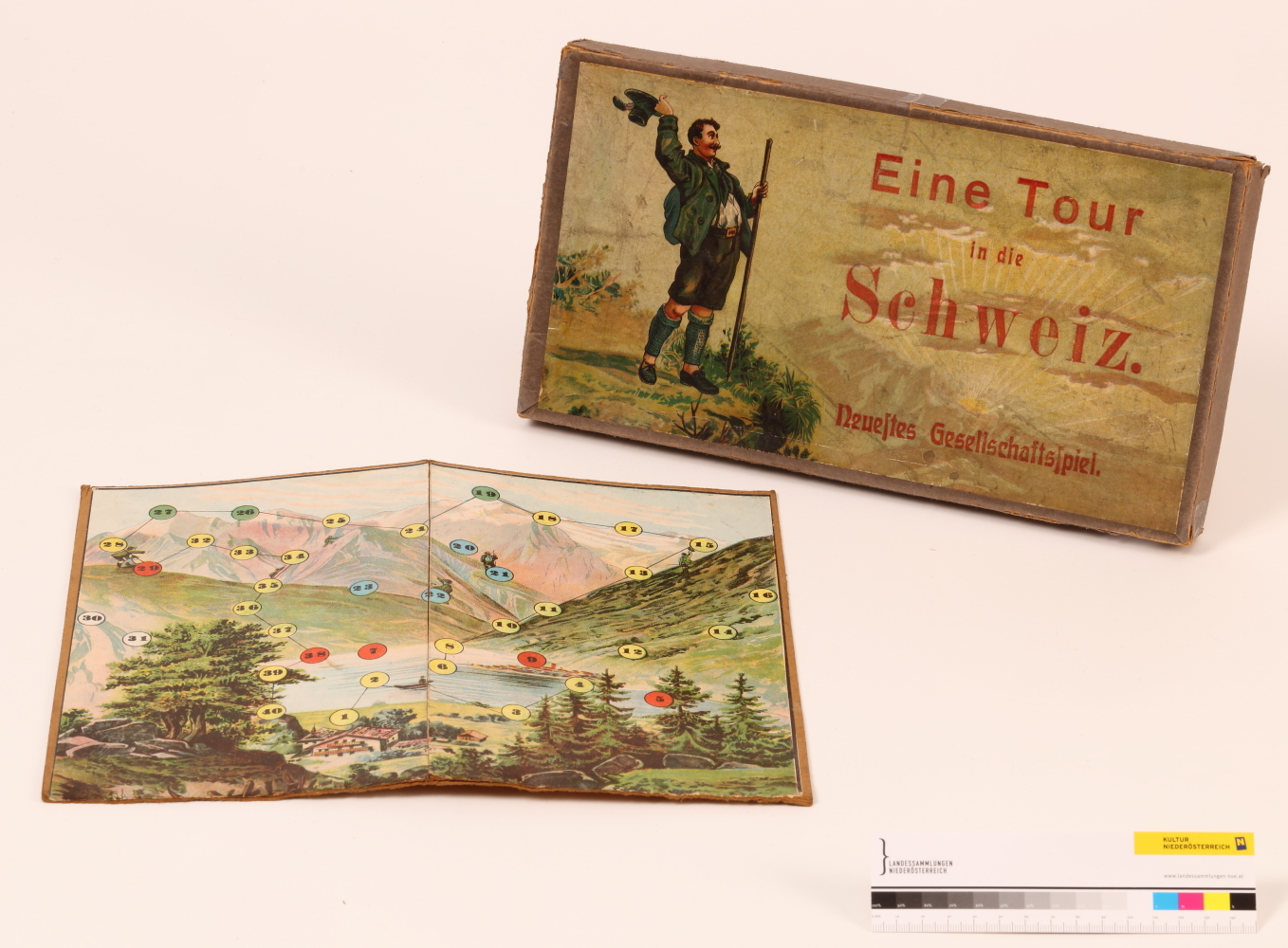Brettspiel „Eine Tour in die Schweiz, neuestes Gesellschaftsspiel“, Originalverpackung