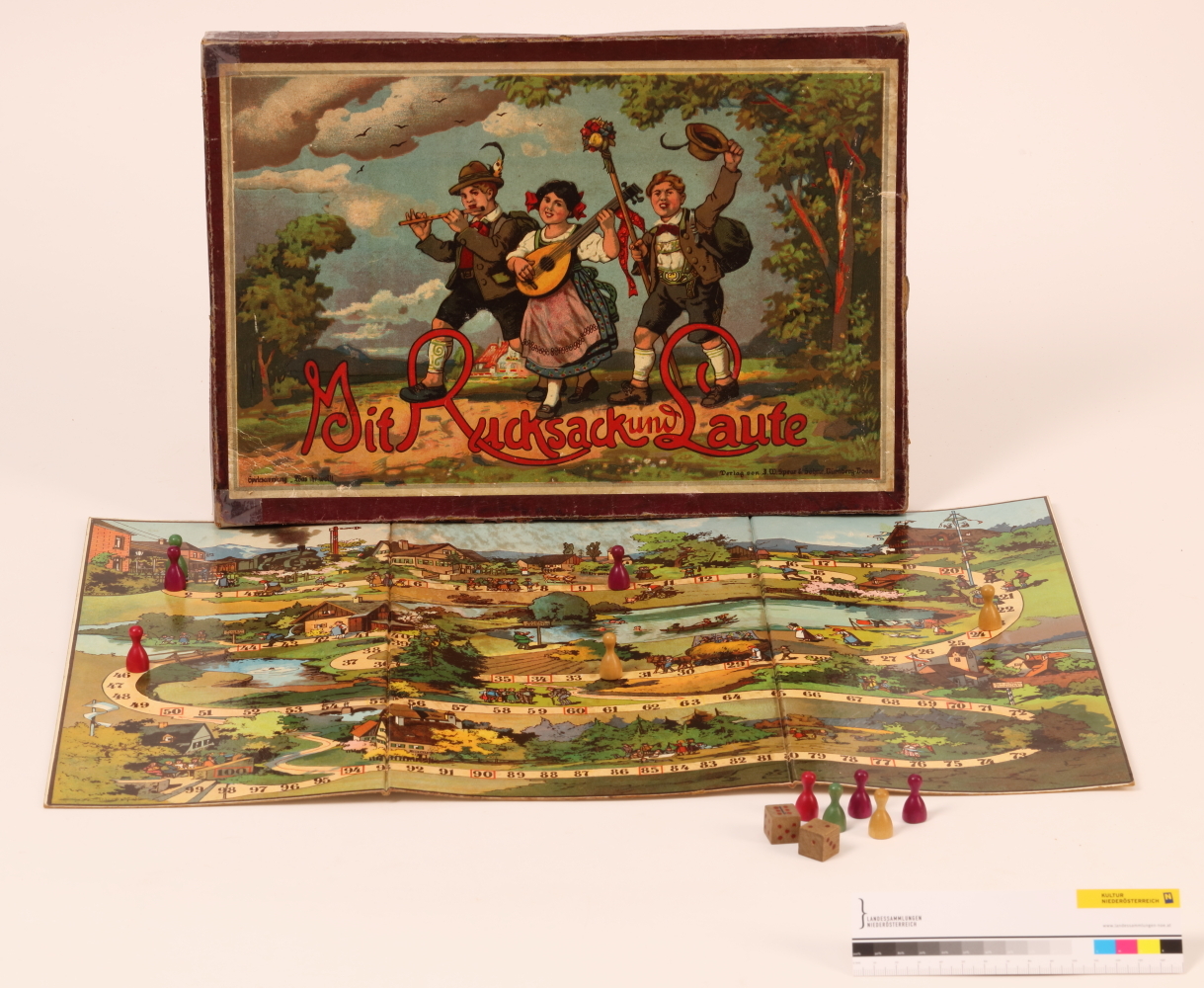 Brettspiel „Mit Rucksack und Laute“, Originalverpackung, Verlag von J.W. Spears & Söhne Nürnberg