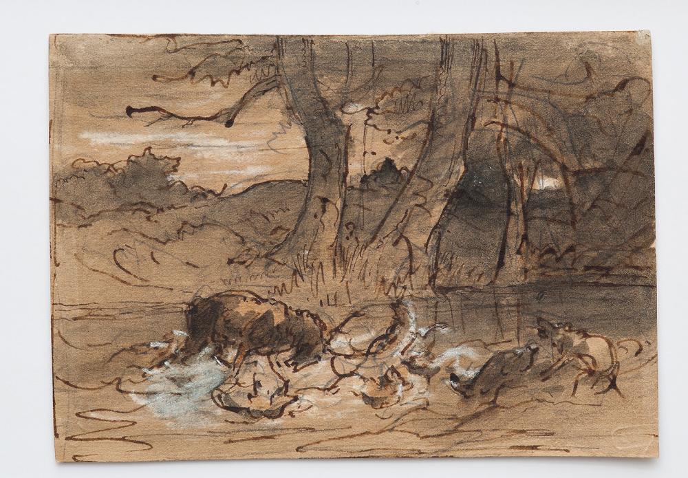 Der Hund bei dem verendeten Hirsch
