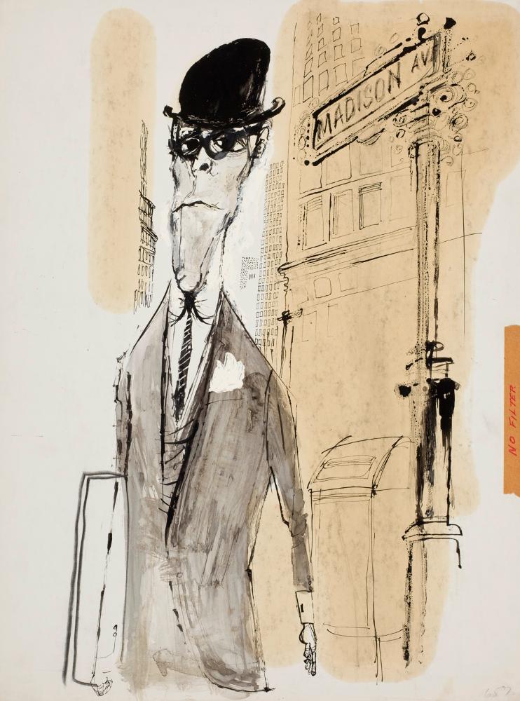 Tusche, laviert, Deckweiß, Leinöl auf Karton