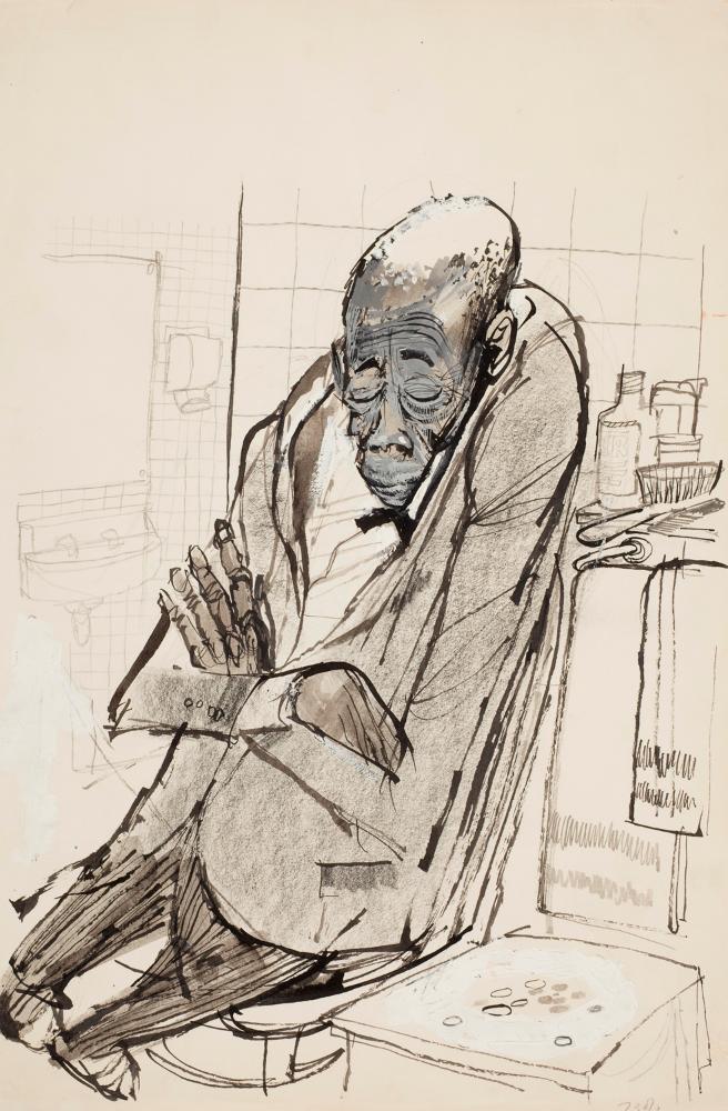 Tusche, laviert, Deckweiß, Bleistift auf Papier