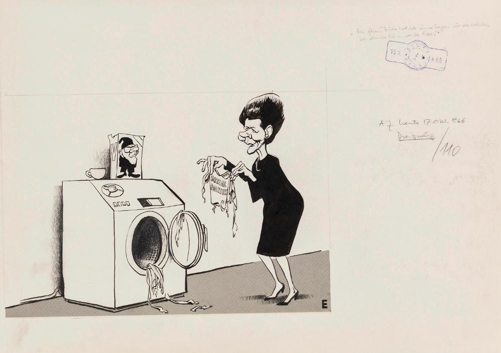 Titel AZ: Das neue Waschmittel / "Au, fein! Früher hatte ich immer Sorgen mit der Wäsche. Jetzt wasche ich schnell und bequem. Ich danke dir, Schwarzer ''!"