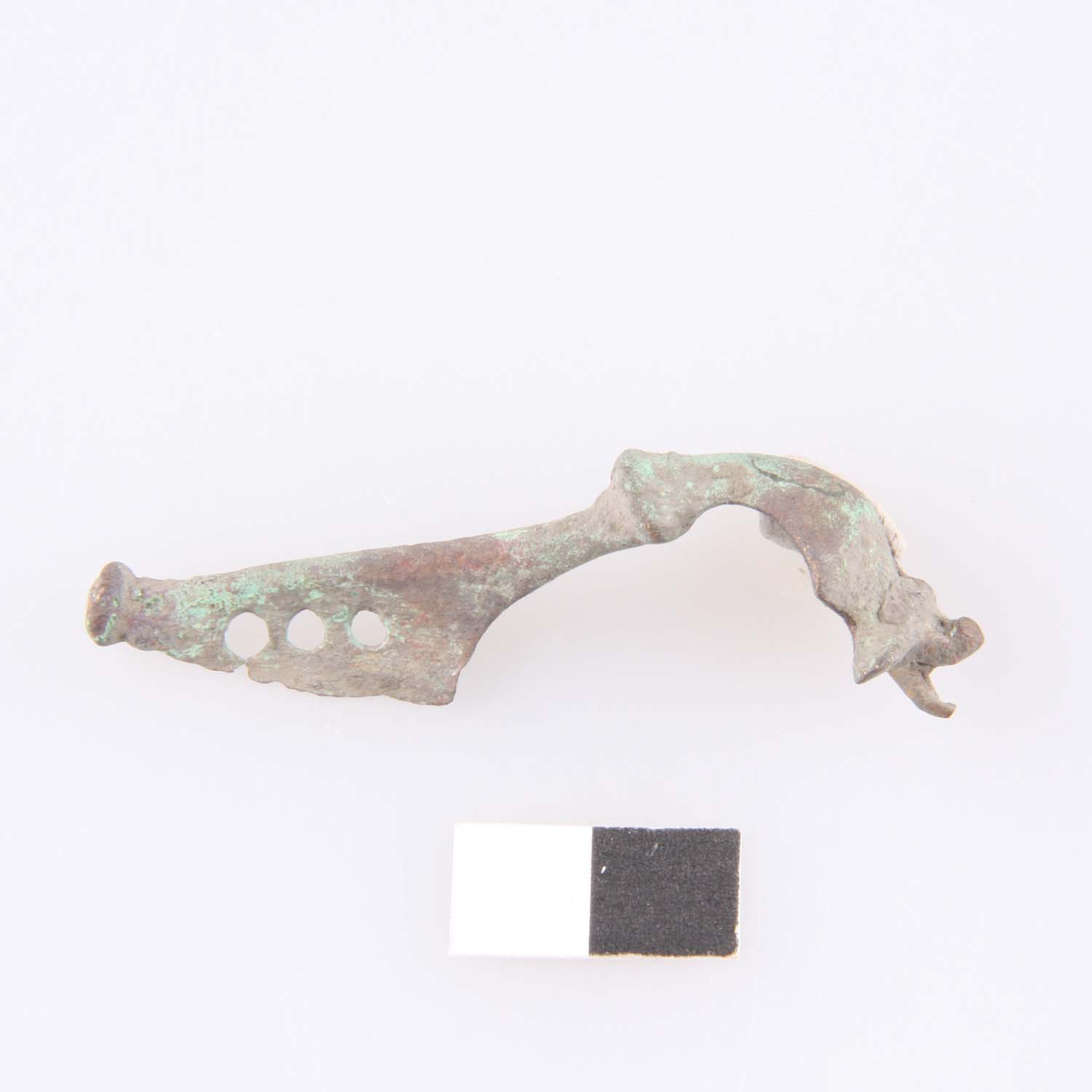 Eingliedrige kräftig profilierte Fibel (A68) mit 3x durchlochter Fußplatte