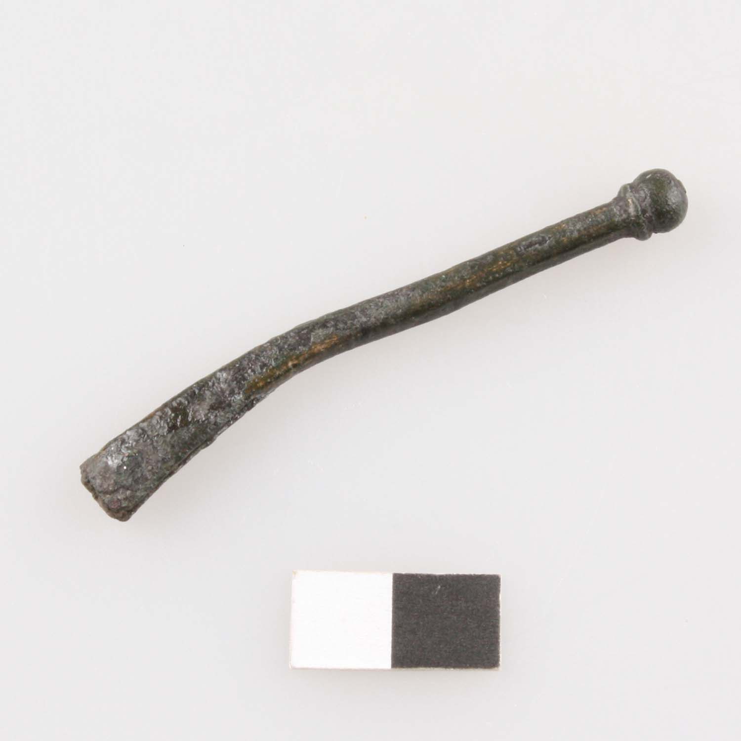 Riemenendbeschlag mit kugelförmigem, profiliertem Ende und erhaltenem Niet