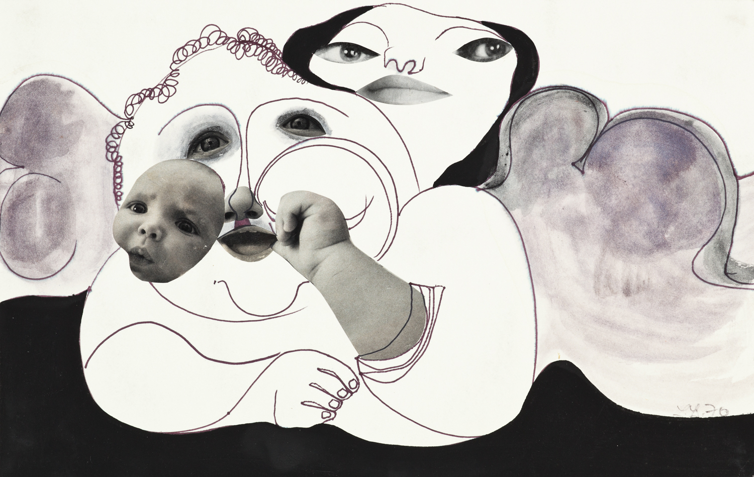 Filzstift, Collage, Tempera auf Papier