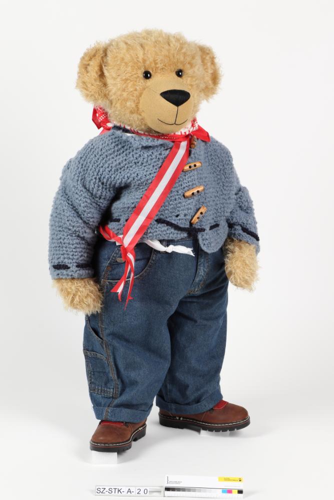 Schallabär - Werbebär für die Spielzeugausstellung auf der Schallaburg 1994