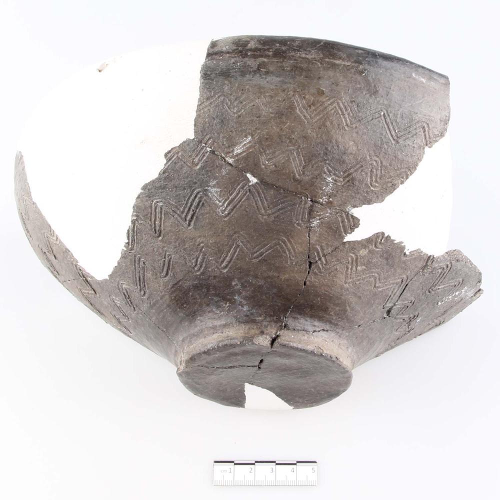 Keramikfragmente, verziert mit Wellenbändern, gegipst und geklebt