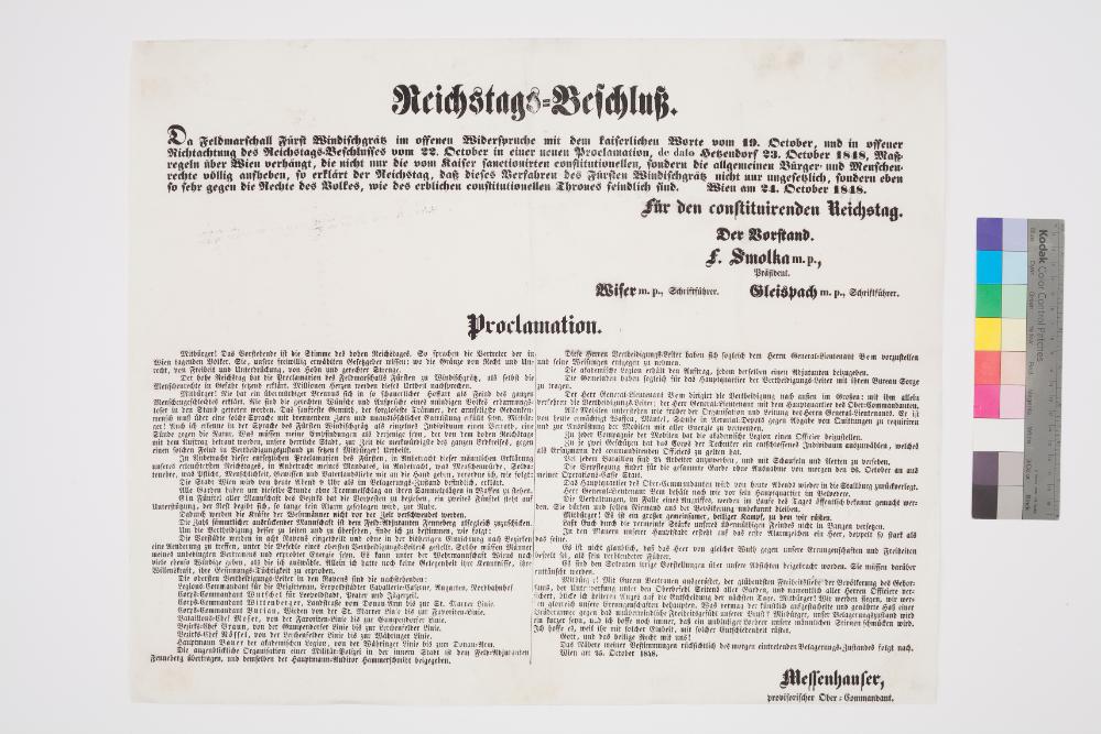 Der Oberkommandant der Nationalgarde Messenhauser veröffentlicht das Ultimatum des Fürsten Windischgrätz an die Wiener Bevölkerung; 24. Oktober 1848