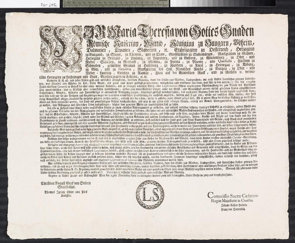 Erst mit Maria Theresia hatte die Außenseiterrolle der Scharfrichter ein Ende. Das Patent wiederholte eine Anordnung vom 17. Oktober 1753, die auch Abdecker, Schinder und Hundsschläger betrag. In Hinblick auf die wichtige Arbeit, die sich für de Gesellschaft leisteten, sollten sie und ihre Familien fürderhin nicht mehr als ehrlos gelten. Wenn sie ihre Profession aufgaben, mussten sie nicht länger als Landstreicher ihr Brot erbetteln, sondern durften Ackerbau betreiben oder für "ehrliche" Leute arbeiten. Ihre Söhne konnten ein Handwerk erlernen und ihre Töchter eine Ehe mit "ehrlichen" Männern eingehen.