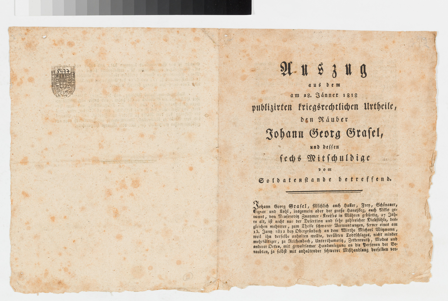 Auszug aus dem am 28. Jänner 1818 publizirten kriegsrechtlichen Urtheile, den Johann Georg Grasel, und dessen sechs Mitschuldige vom Soldatenstande betreffend