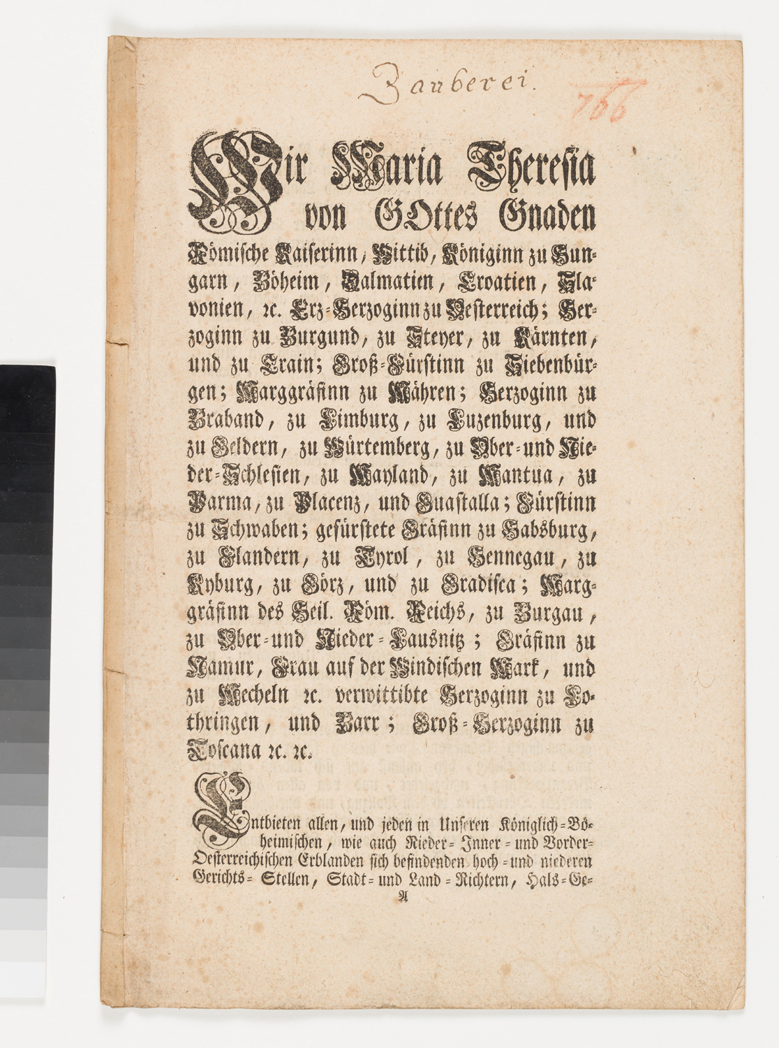 Im Patent wird verordnet, dass sämtliche Kriminalfälle von Zauberei und Hexerei, soweit sie bei der Prüfung nicht als Betrug erkannnt wurden, zur höchsten Beschlussfassung vorgelegt werden müssen. Durch dieses Patent hörte die Hexenverfolgungen in Österreich auf, obwohl die 1769 erschienene "Constitutio Criminalis Theresiana" das Delikt der Zauberei und Hexerei nocht kannte. Im Josefinische Strafgesetzbuch findet sich das Delikt der Zauberei und Hexerei nicht mehr.