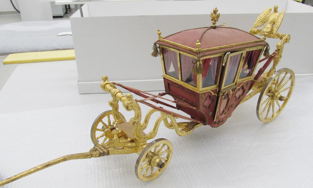 Leibkarosse Kaiser Karl VI. Holz vergoldet, roter Samt; Reihe 16-16, Position 41.