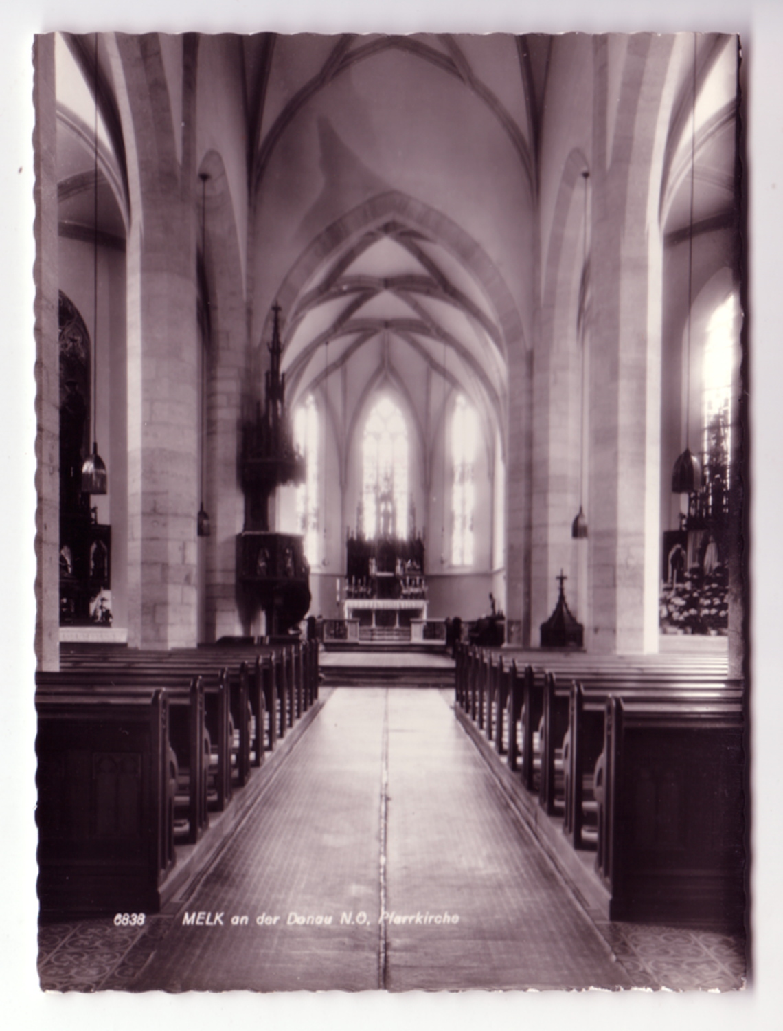 Pfarrkirche, Innenansicht des Hauptschiffes in Richtung Hochaltar.