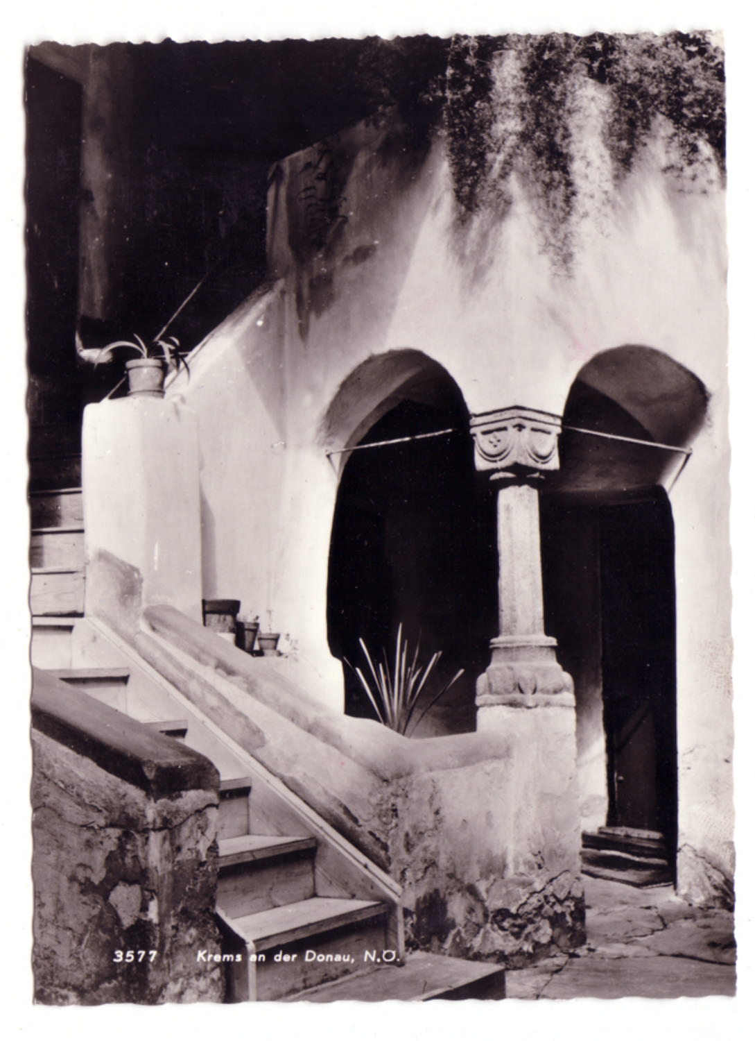 Detailansicht eines Stiegenaufganges von einem historischen Gebäude.
