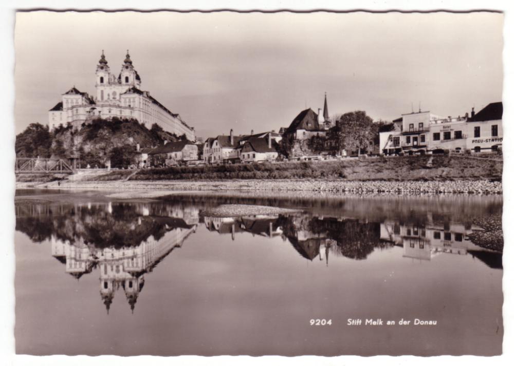 Ansicht der Stadt und des Stiftes von der Donau aus.